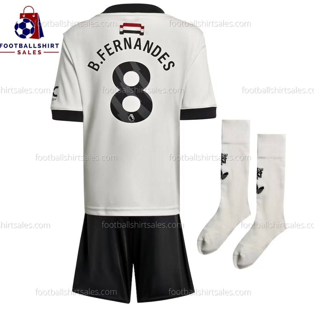 - Once we process your order for the Manchester United B.Fernandes 8 Third Kid Football Kit Sales 24/25, please note that we cannot accept returns or issue refunds for personalized shirts with names/numbers. However, if the item is damaged or defective, we will gladly refund your purchase.